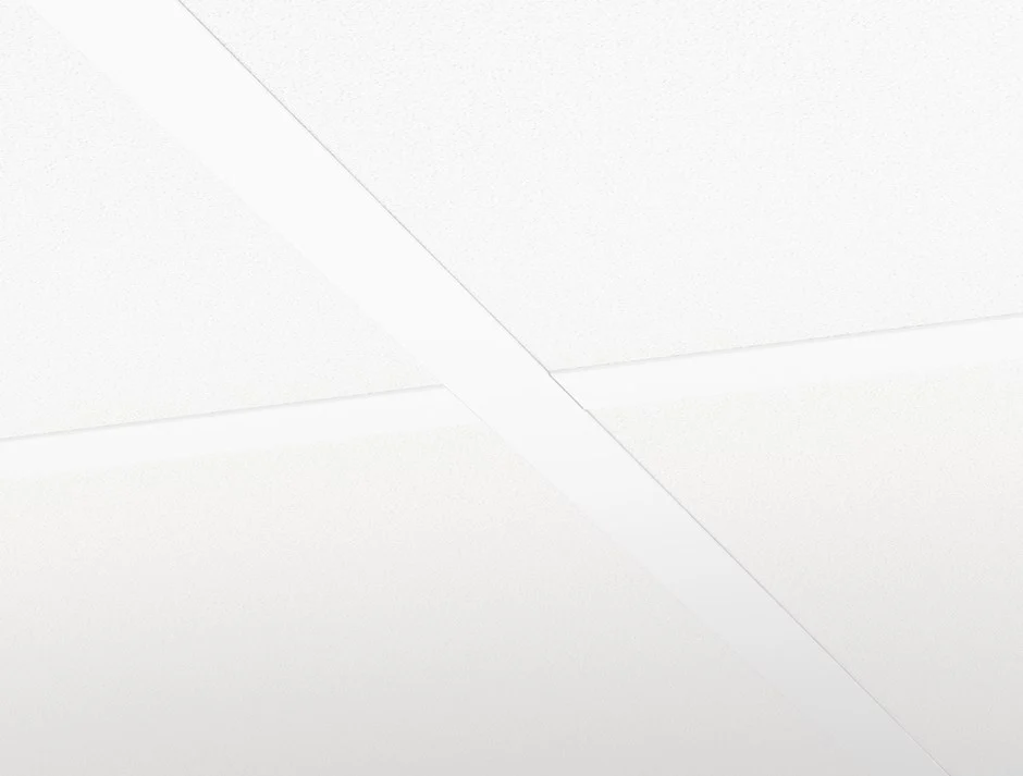 Hygieeninen akustiikkakatto kuiviin tiloihin upotetuilla listoilla
