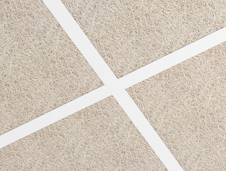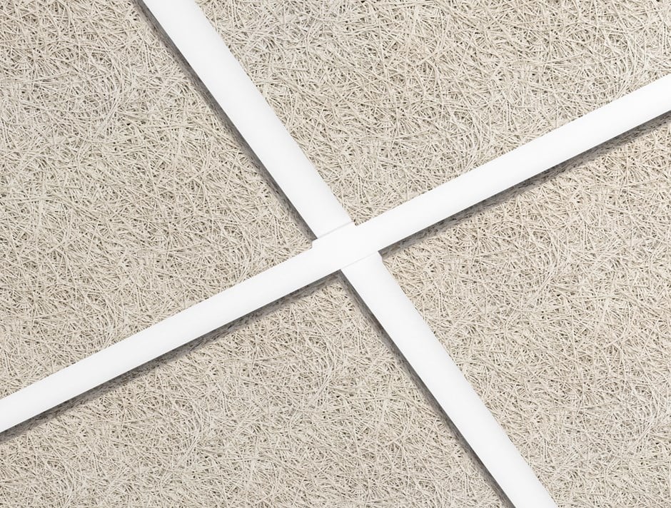 Puukuituakustiikkakatto näkyvillä listoilla tai suorakiinnityksellä