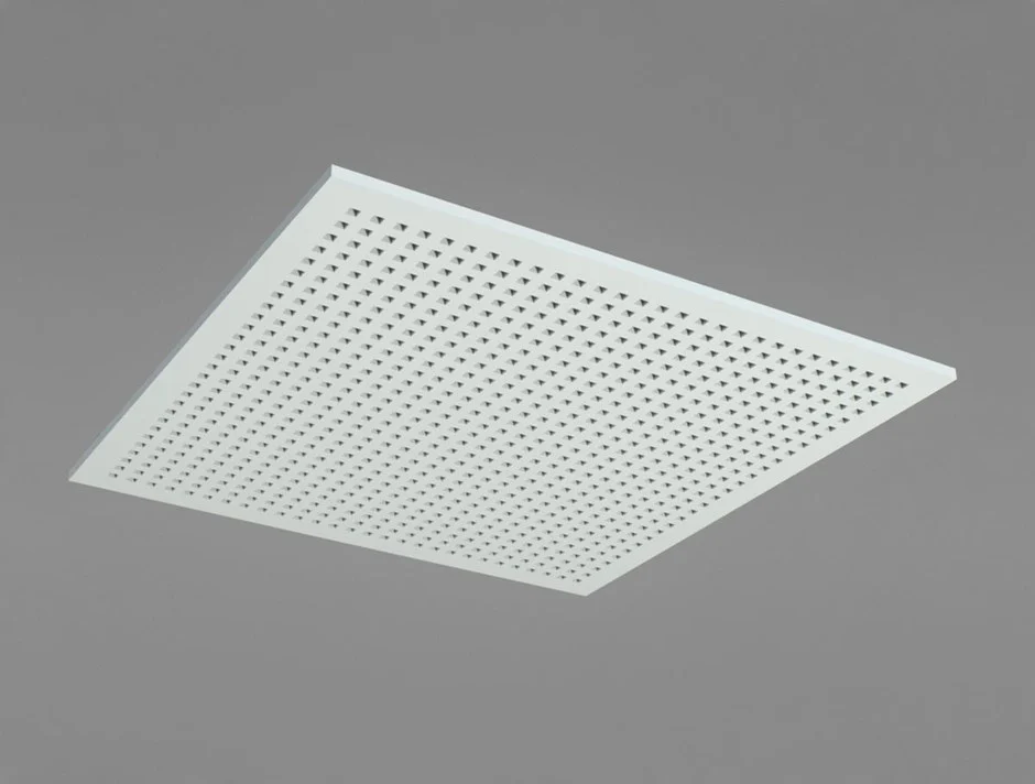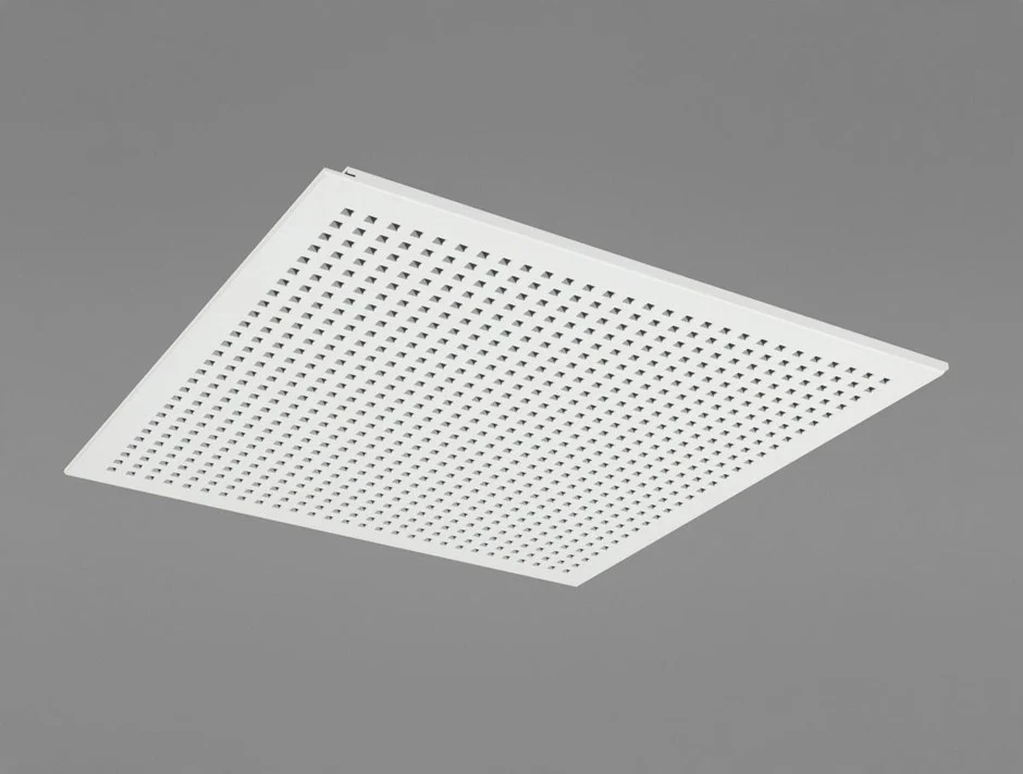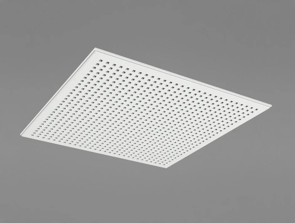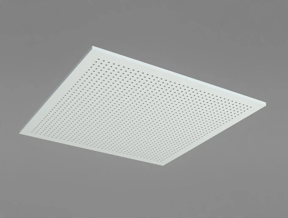 Kipsiakustiikkalevyt neliömäisellä reikäkuviolla ja upotetulla näkyvällä listalla