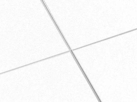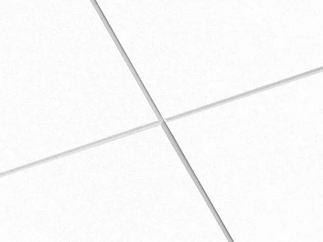 Suorakiinnitteinen valkoinen akustiikkalevy. joka yhdistää tyylikkään ulkonäön ja äänenvaimennuksen.