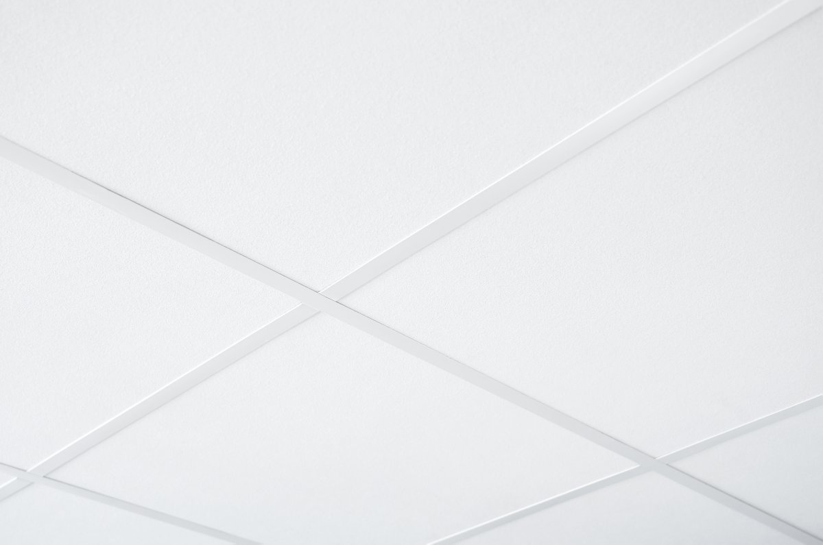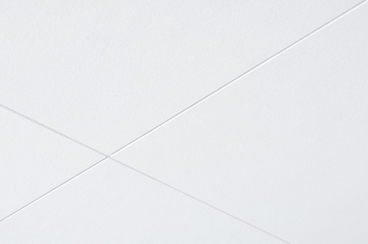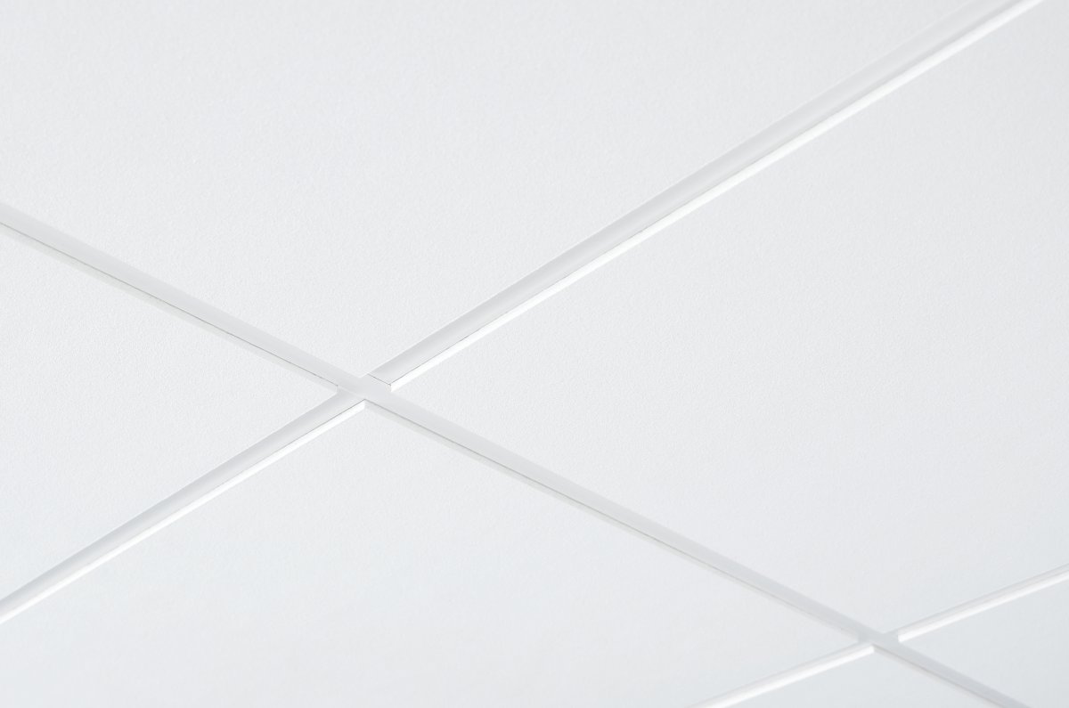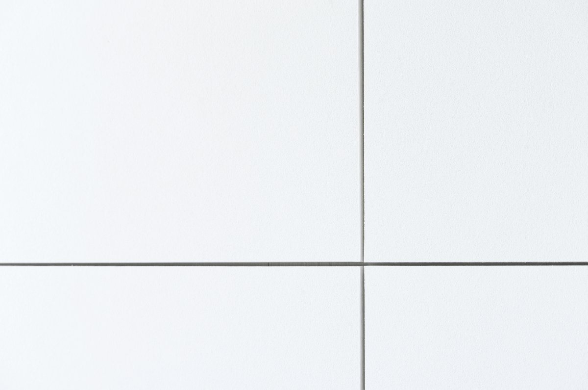 A-reunainen valkoinen akustiikkalevy. joka yhdistää tyylikkään ulkonäön ja äänenvaimennuksen.